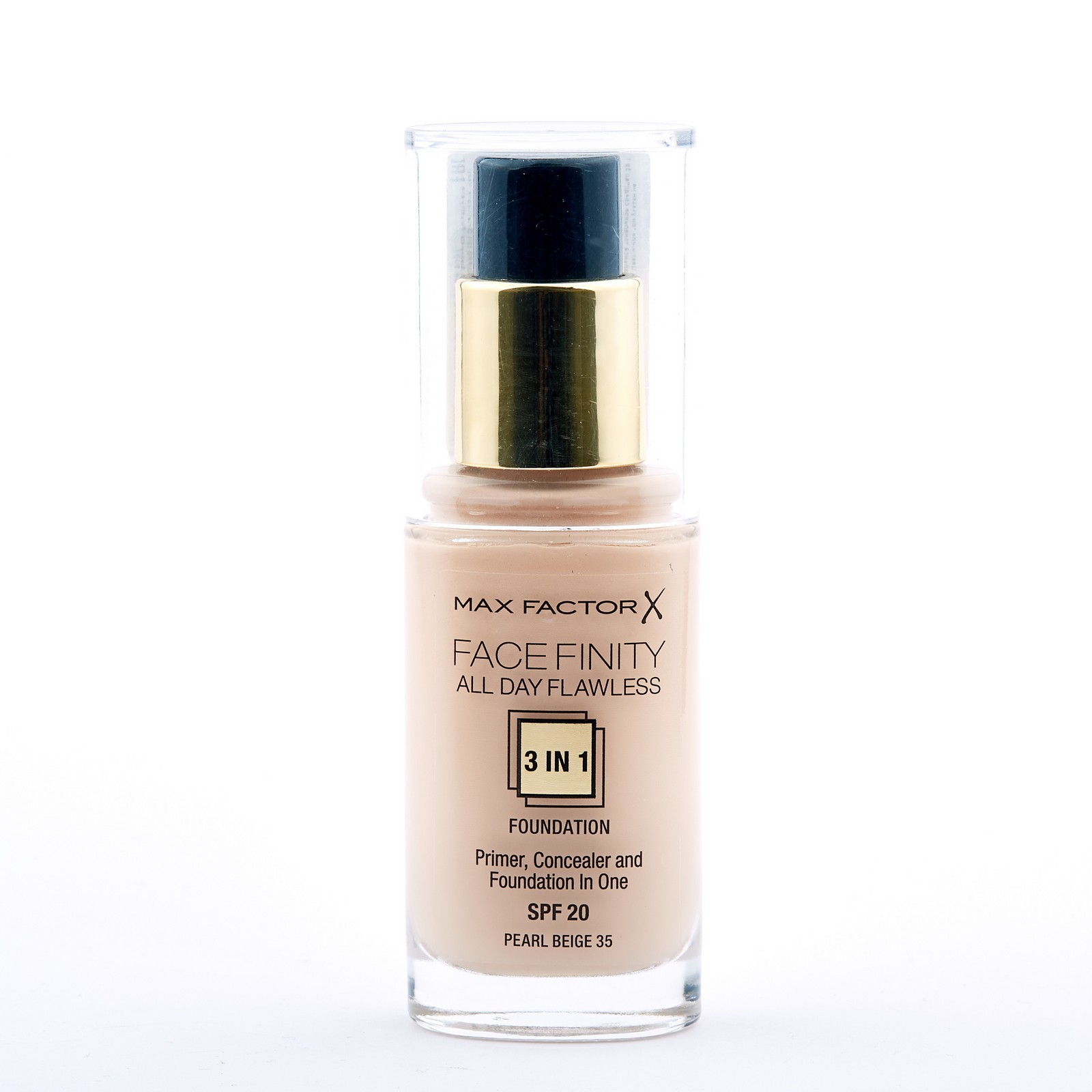 Тональний крем для обличчя Facefinity All Day Flawless 3-in-1 Foundation від американського бренду Max Factor забезпечує матове покриття та рівномірний відтінок, маскуючи недосконалості шкіри, зморшки, пігментні плями та почервоніння. Цей засіб має потрійний ефект: діє як закріплююча основа, коректор і сонцезахисний крем. При нанесенні не створює ефекту маски, не забиває пори, дозволяючи шкірі дихати і підтримуючи цим її здоров'я та красу. УФ-фільтри SPF 20 надійно захищають шкіру від шкідливого впливу сонячних променів, запобігаючи появі пігментних плям і передчасному старінню шкіри. До формули тонального крему увійшли спеціальні абсорбуючі мікрочастинки, які запобігають появі жирного блиску, забезпечуючи матове покриття на весь день. Шкіра виглядає гладкою, бархатистою та рівною, без недоліків та неприємного блиску, а Ви відчуваєте комфорт та впевненість у своїй неперевершеності протягом усього дня.Характеристики